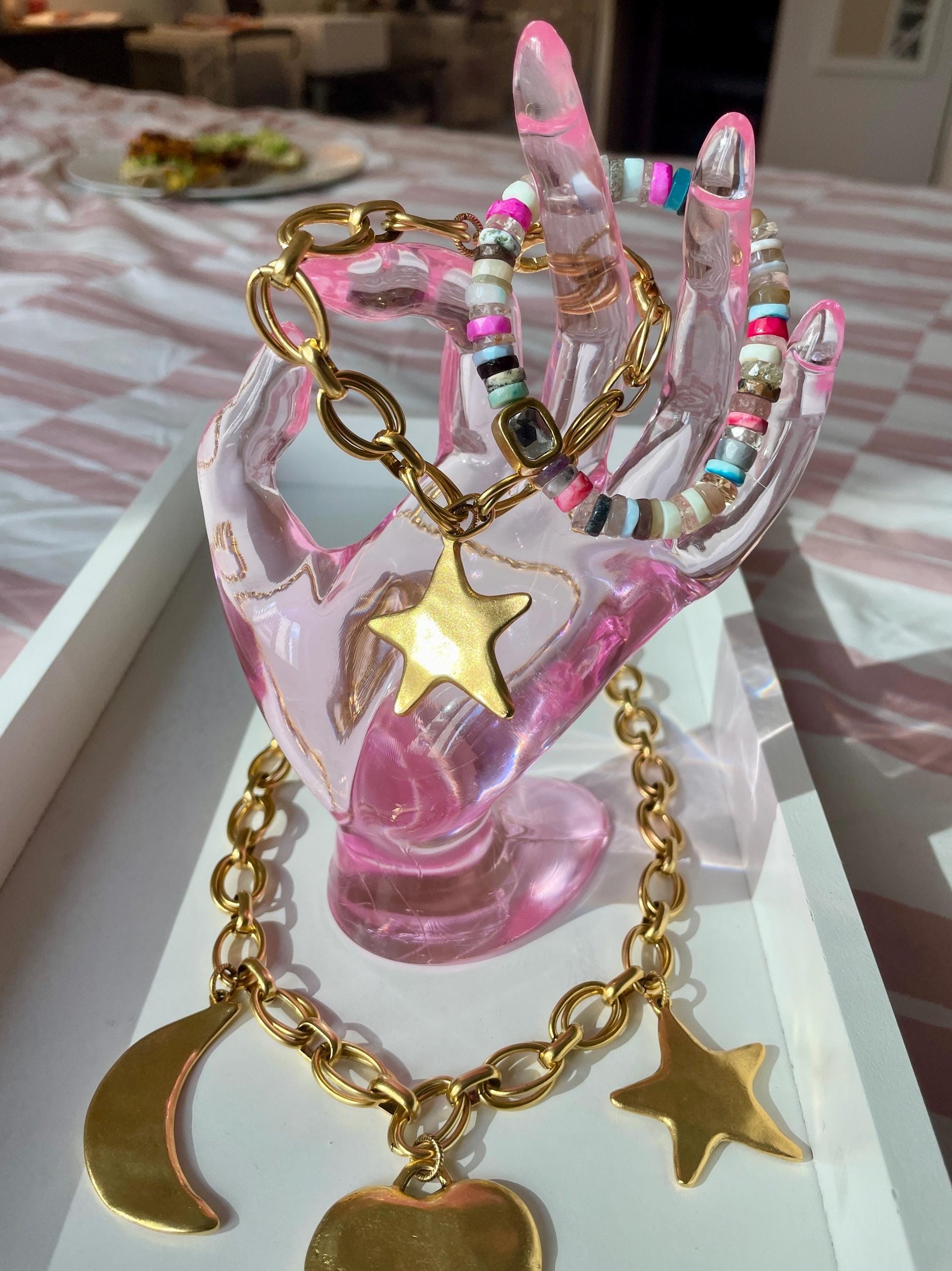 Fruity Pebbles Swarovski Bracelet | Rainbow Heishi Gemstones & Crystal Centerplate