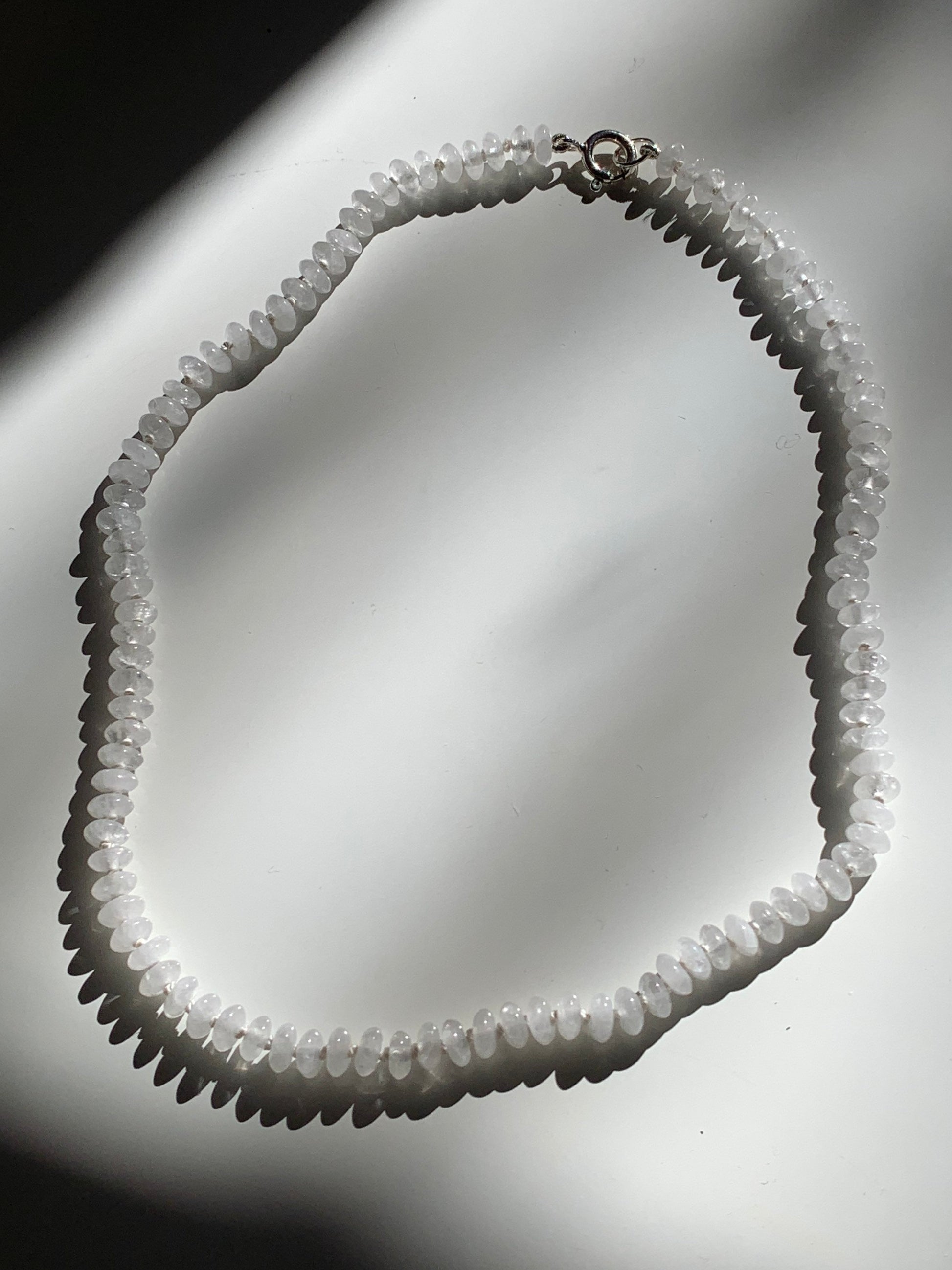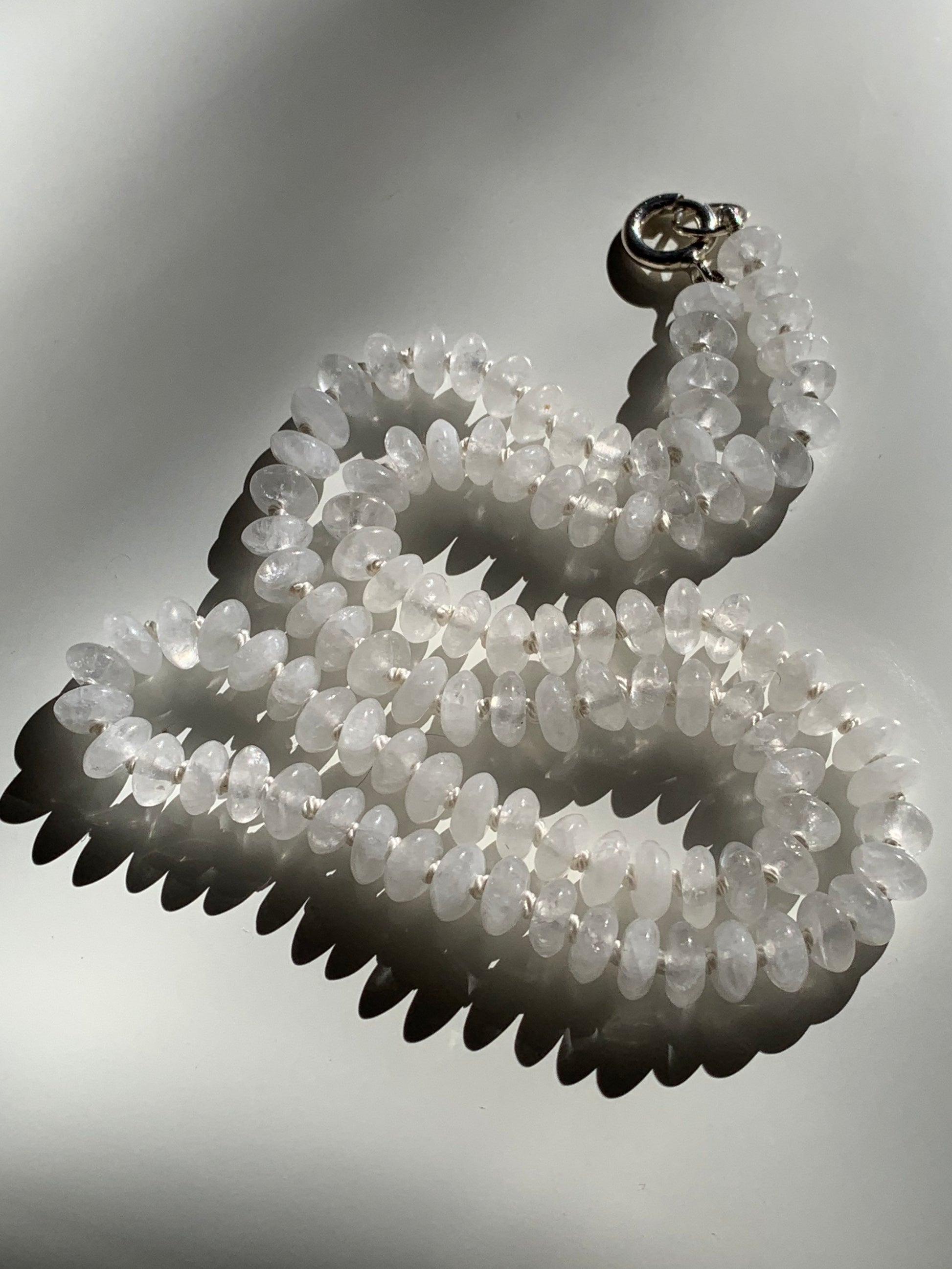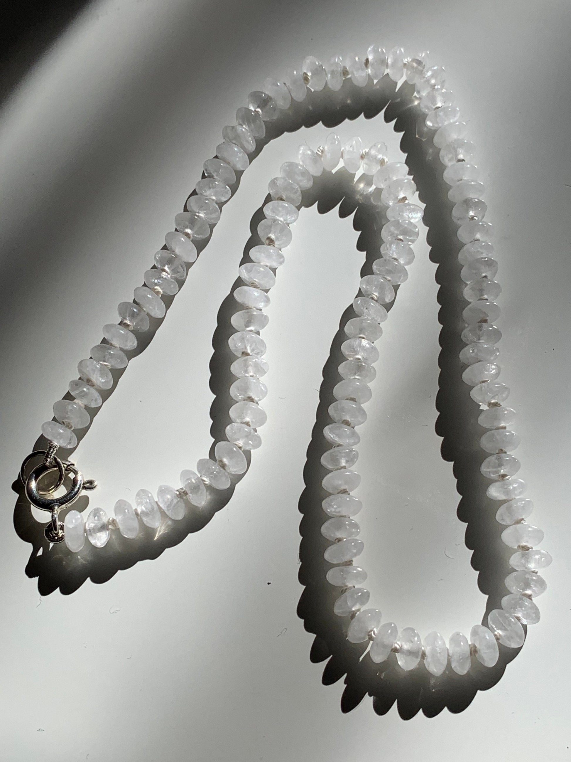 The 'Fun Size Milky Way' Candy Necklace is from my latest nostalgia line. An ode to the candy necklace of your childhood with a luxe feel. My pieces are designer inspired and priced for accessibility. This necklace features gorgeous smoky quartz rondelle stones, hand knotted on silk thread, with 925 stamped sterling silver. The listing photos feature the 18" version of this piece with the current sterling silver finish, as well as an older version with a gold filled finish. Light Purple and White thread are also featured.