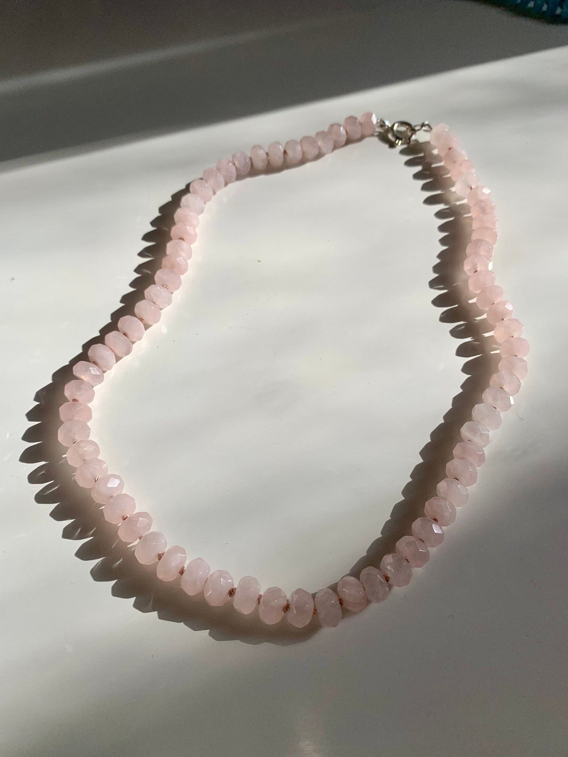 The 'Country Time Lemonade' Rose Quartz Candy Necklace is from my latest nostalgia line. An ode to the candy necklace of your childhood with a luxe feel. My laces are designer inspired and priced for accessibility. This 17.5” necklace features stunningly faceted rose quartz rondelle stones, hand knotted on blush pink silk thread, with 925 stamped sterling silver. My pieces are most often made to order, if you don’t see your favorite color or length please reach out!