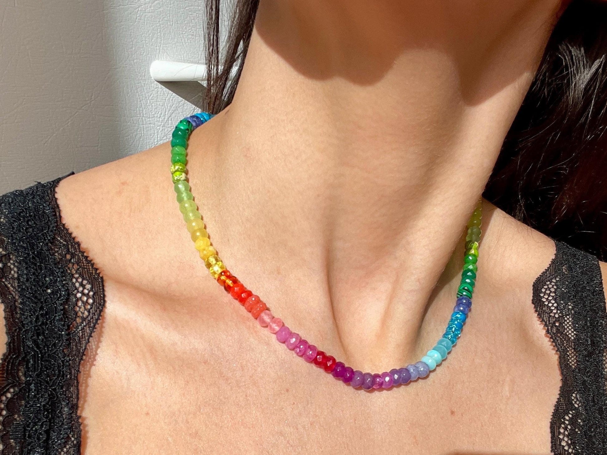 The Skittlitas Line features the same juicy rainbow of gems we’ve always used, now strung on silk thread to mirror the stability and fluidity of the original piece. This is the 6mm mini version of the original Skittle necklace with sterling silver or 14k gold filled spring ring closure.