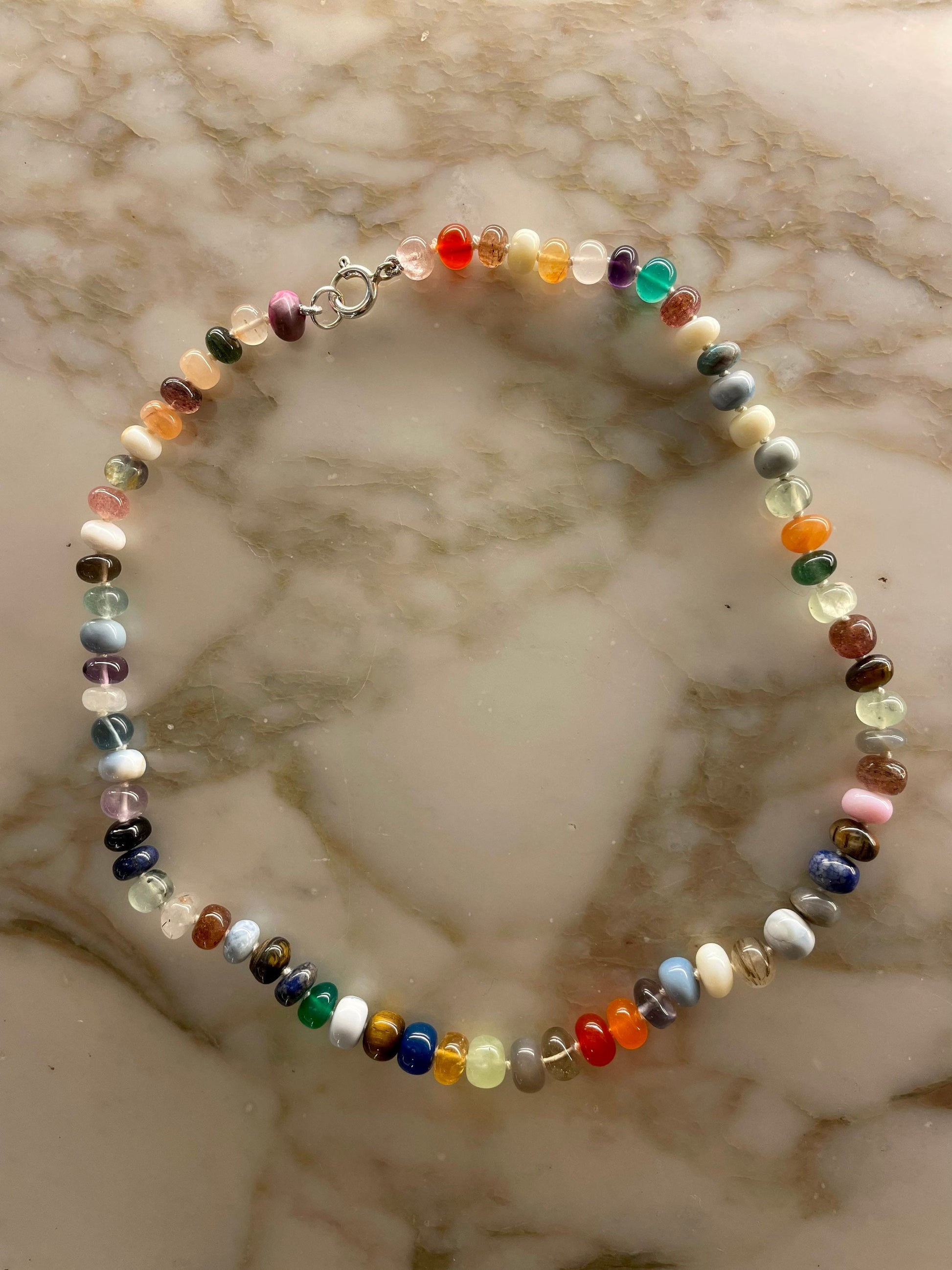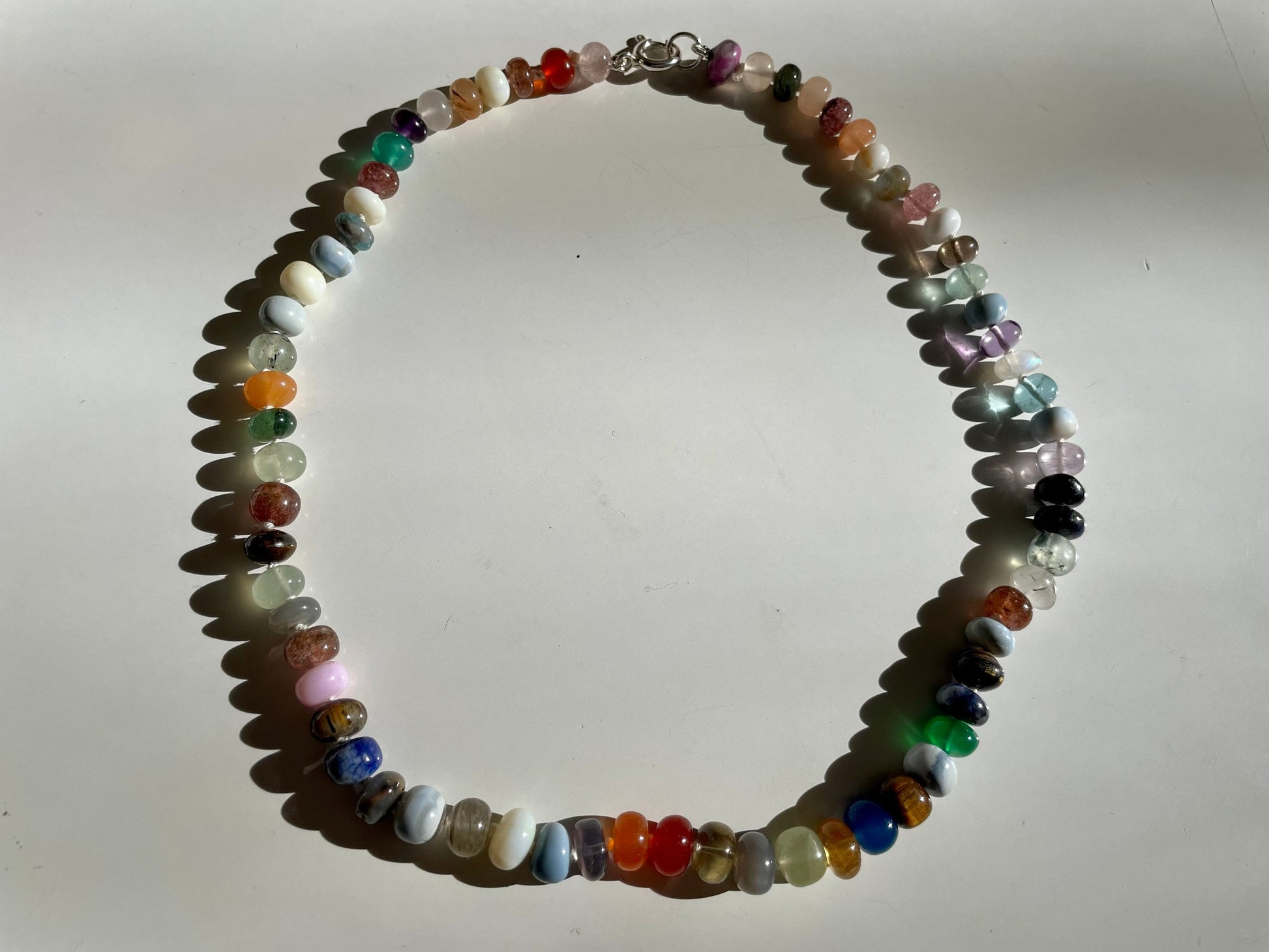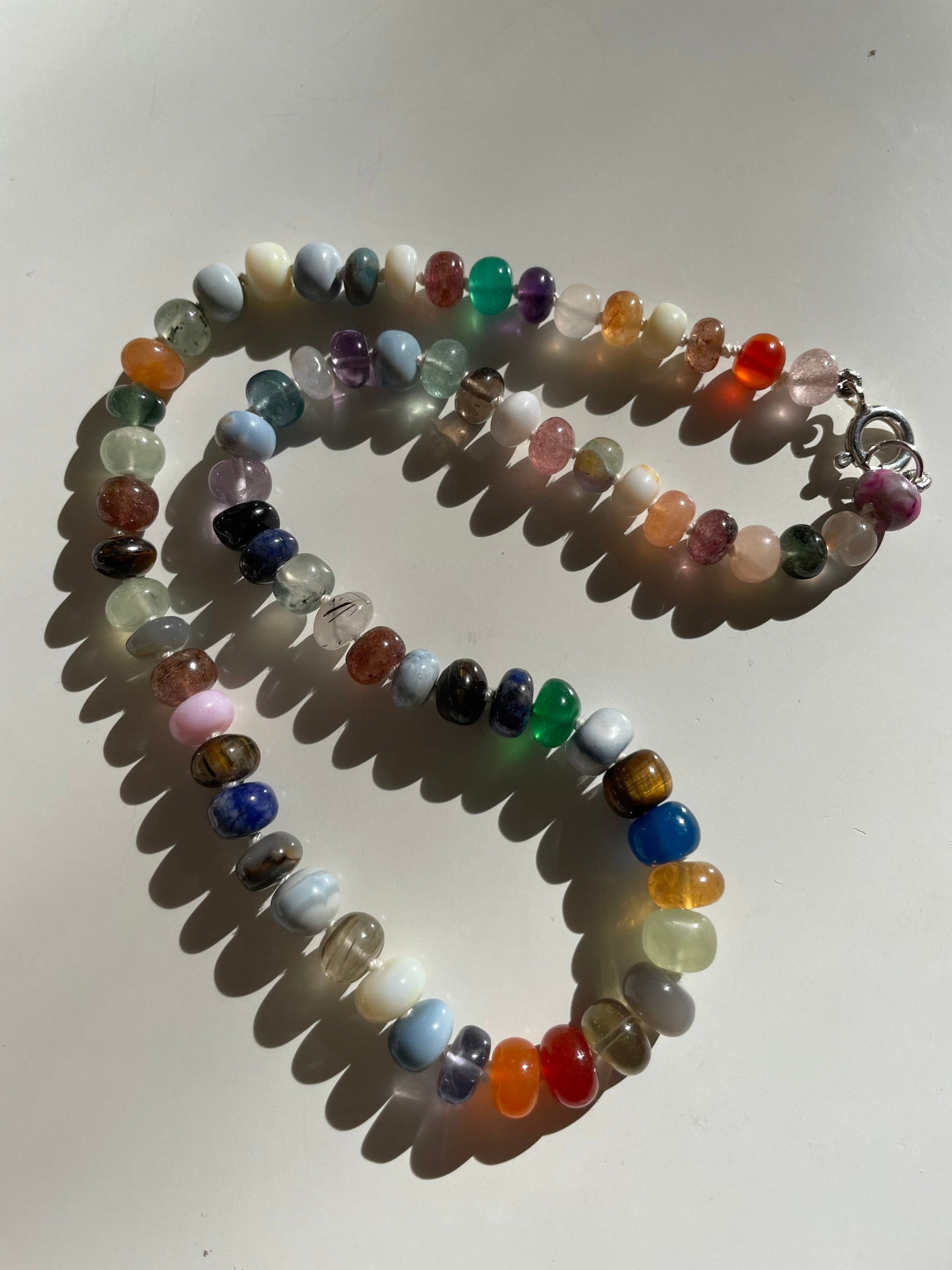 18” of Grade AAA large richly colored gemstones, hand knotted on silk thread with 925 stamped sterling silver findings.