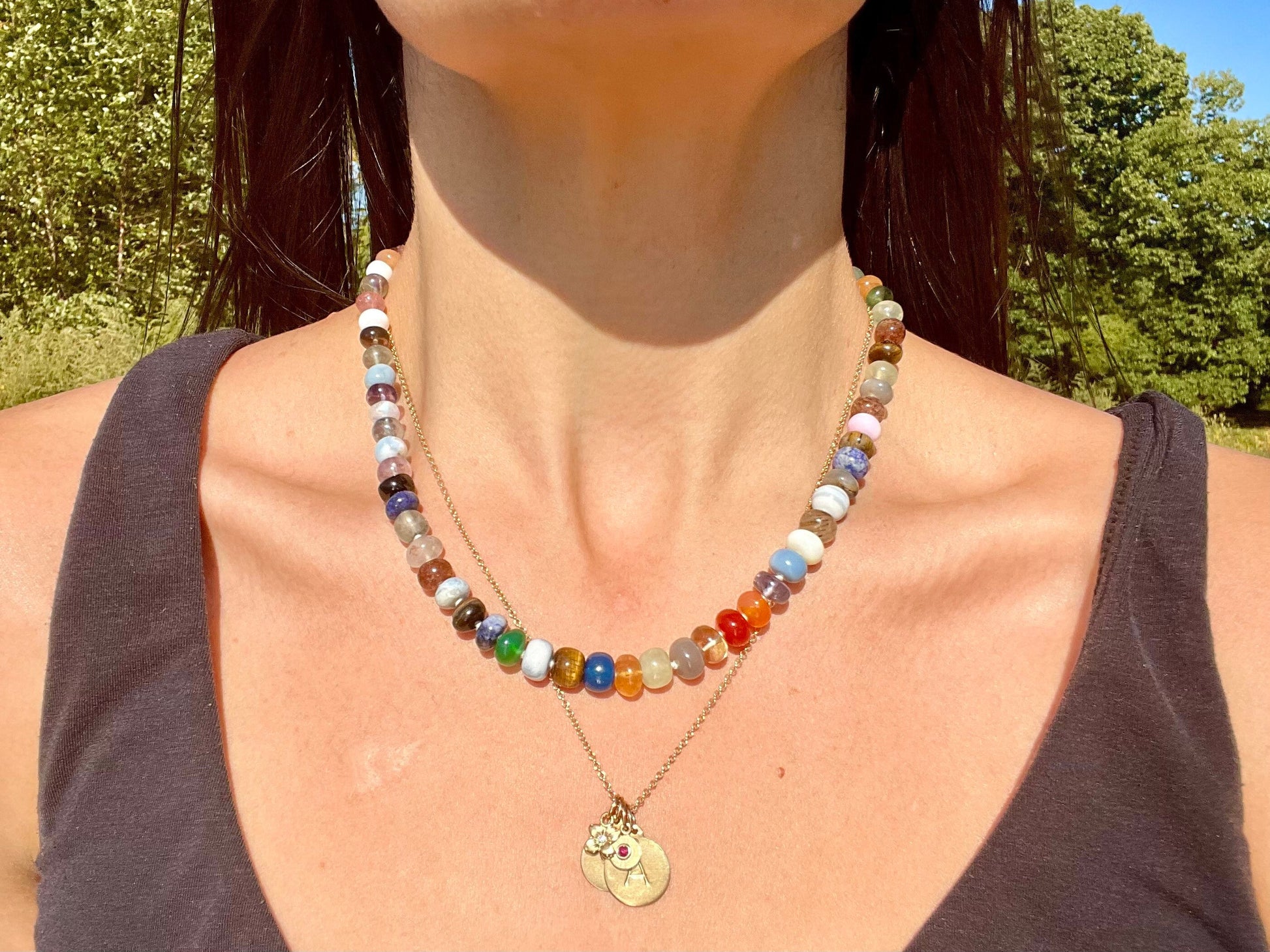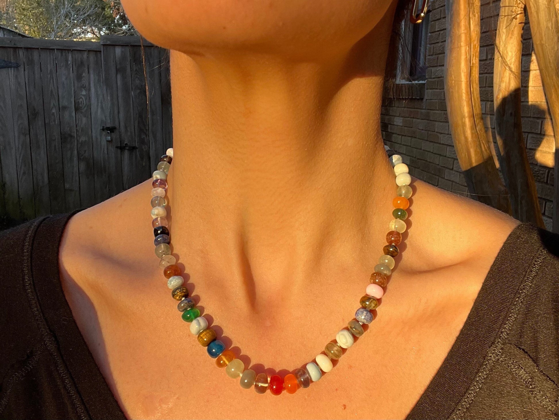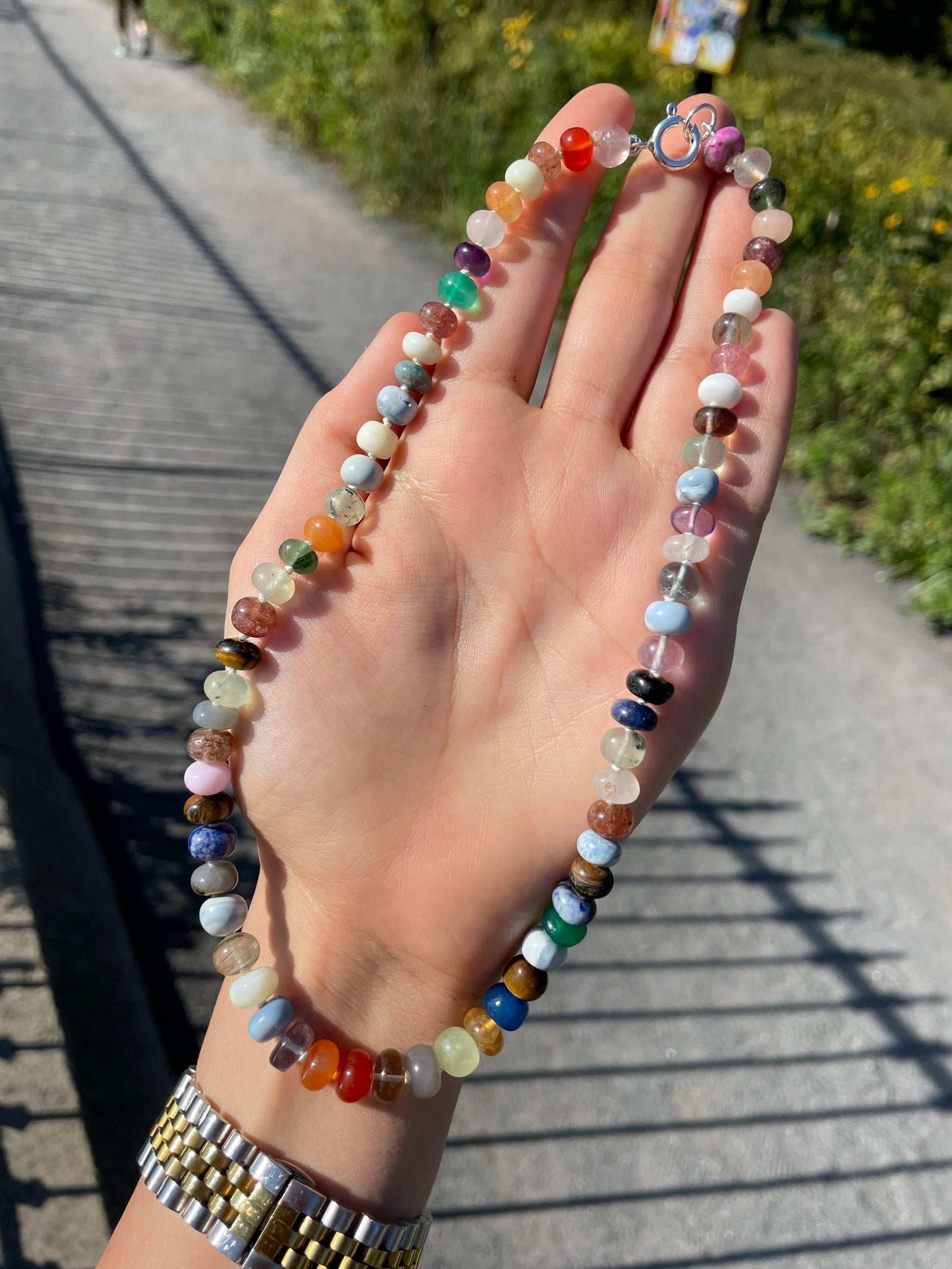 18” of Grade AAA large richly colored gemstones, hand knotted on silk thread with 925 stamped sterling silver findings.