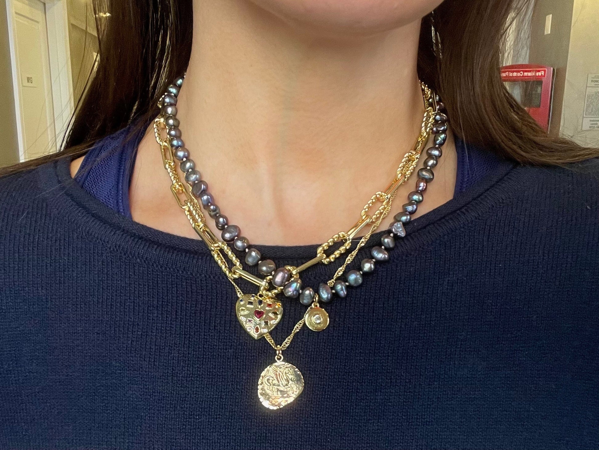 Ursula’s Part of Your World- Hand-knotted Black Pearl and 14K Gold Filled Disk Charm